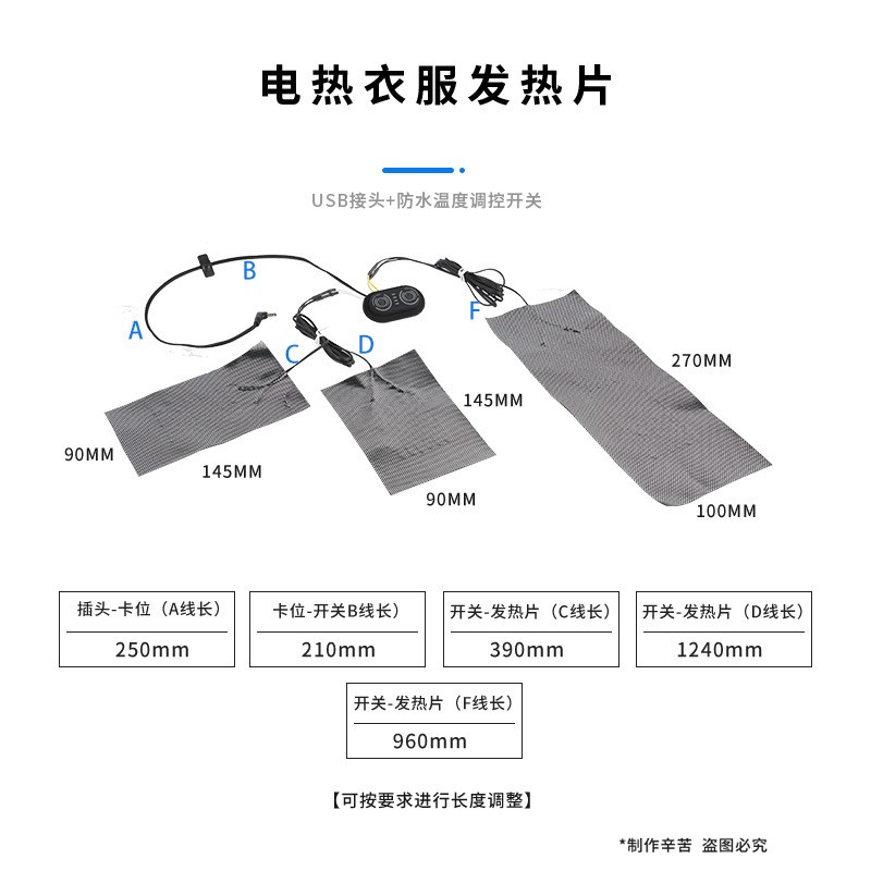 衣服加熱片可以按照客戶要求進(jìn)行加工適合電熱服裝常規(guī)衣服采暖電熱裙子電熱鞋墊電熱襪子電熱褲子電熱腰帶電熱披肩醫(yī)療熱敷熱敷電熱產(chǎn)品中藥理療產(chǎn)品電熱手套等穿戴產(chǎn)品保溫采暖..