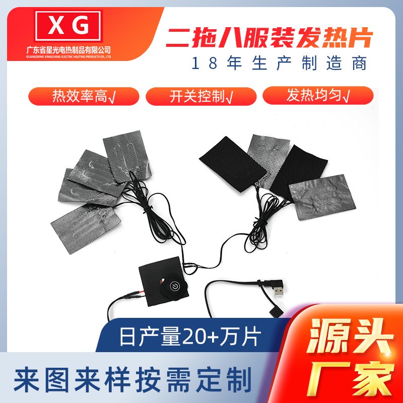 服裝碳纖維加熱片如何在一拖三和一拖五中正確選擇,市場的電熱服裝多采用金屬加熱片的原理