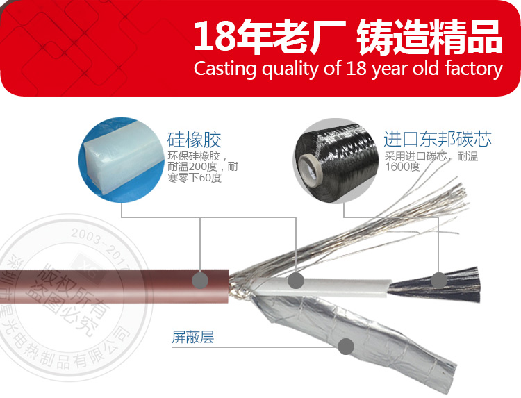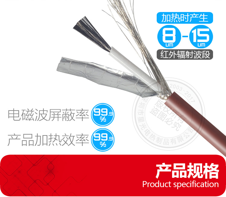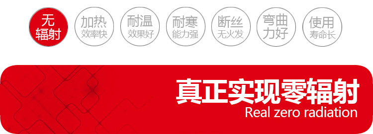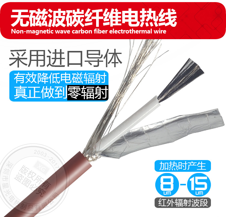 無(wú)磁波碳纖維加熱線,簡(jiǎn)稱無(wú)磁界碳纖維電熱線,也有玉石床墊專用碳纖維發(fā)熱線之稱呼,內(nèi)部多采用進(jìn)口碳纖維為加熱導(dǎo)體,采用硅橡膠為絕緣層,以<Ω/M>為電阻單位,粗細(xì)單位<MM>顏色任意可選,產(chǎn)品耐溫極限為200℃, 長(zhǎng)期150℃以下使用壽命長(zhǎng)達(dá)8-12年, 產(chǎn)品抗拉和彎曲性能很好,通??梢猿惺?5KG以下的拉力,屏蔽率可以做到99%,技術(shù)標(biāo)準(zhǔn)參考UL758相關(guān)標(biāo)準(zhǔn),產(chǎn)品成本低廉,被玉石床墊行業(yè)認(rèn)定為適用的加熱組件之一
