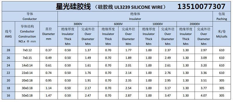 3239硅膠線規(guī)格表